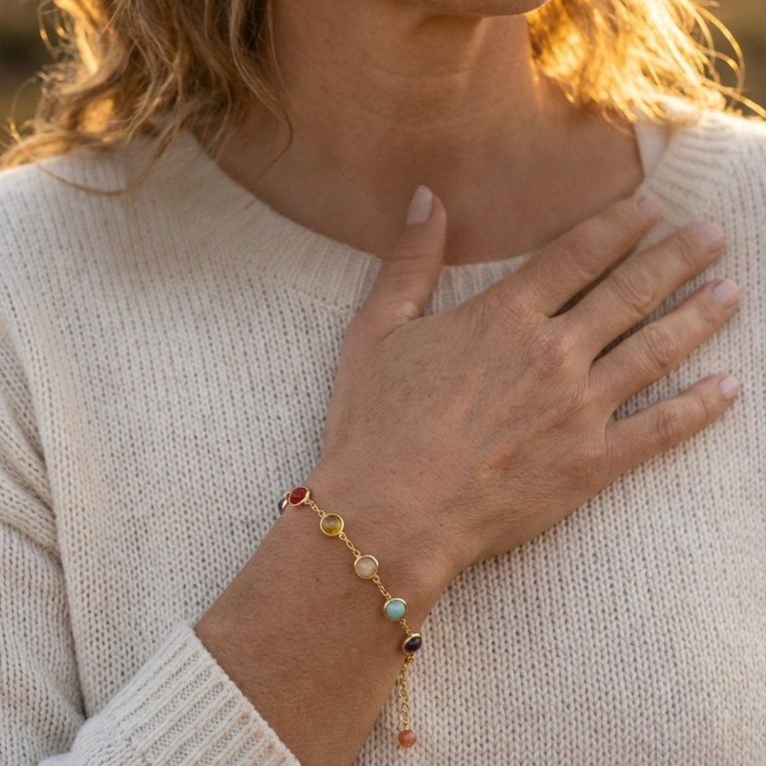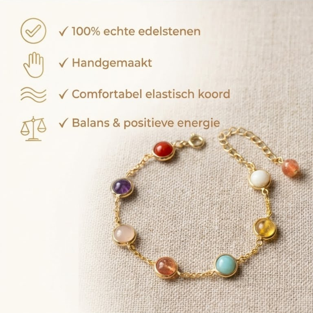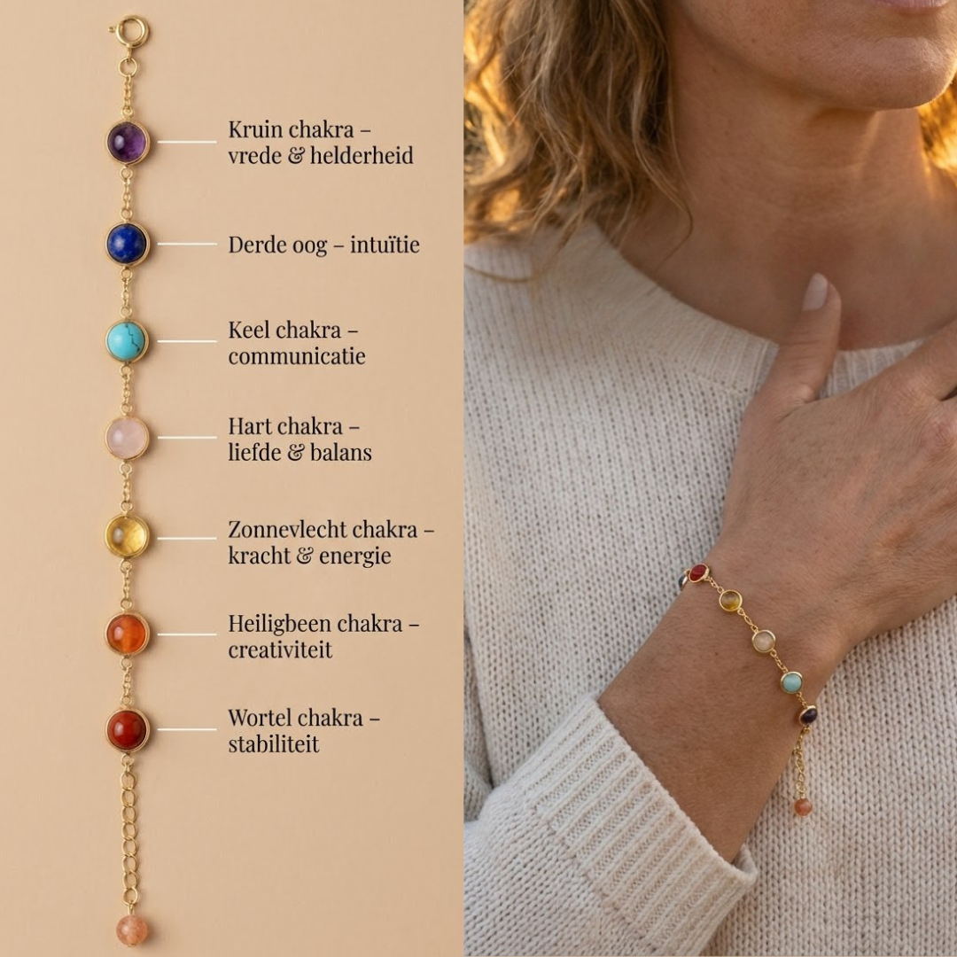 De Seven Chakra Bracelet herinnert je eraan gecentreerd, kalm en zelfverzekerd te blijven – zelfs op de drukste dagen. Perfect voor wie innerlijke rust, zelfvertrouwen en emotionele helderheid zoekt.