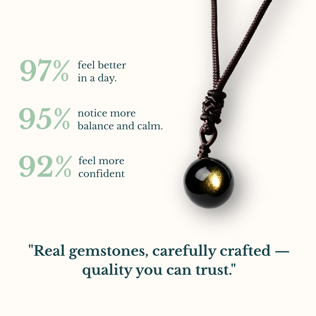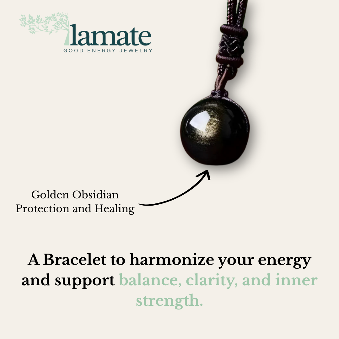 The Obsidian Zen® Necklace by Lamate is more than jewellery – it’s a statement of balance and inner strength. Handcrafted with genuine Golden Obsidian, this piece is designed to shield your energy, clear your aura, and reconnect you with your core essence.
