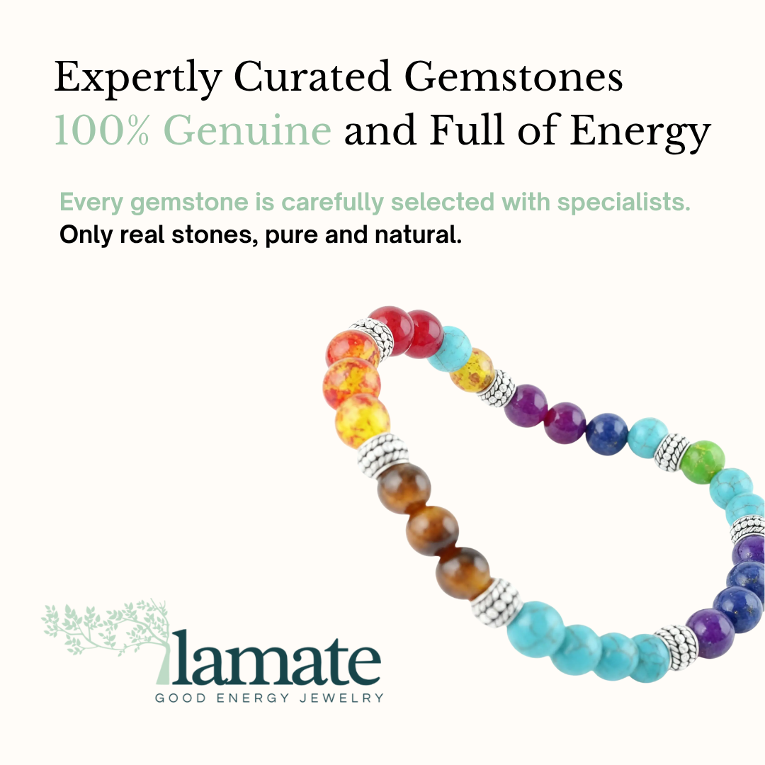 The “Soul Balance” – Chakra Bracelet by Lamate is designed to restore clarity, confidence, and inner peace. Inspired by Tibetan energy traditions, this multicolored bracelet balances your seven chakras through a radiant alignment of natural gemstones.